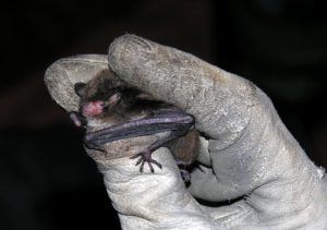 Daubenton’s bat being held by a bat worker showing one of its big feet (c) Shirley Thompson / Bat Conservation Trust