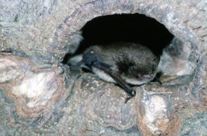 Daubenton’s bat in a tree hole (c) Hugh Clark / Bat Conservation Trust