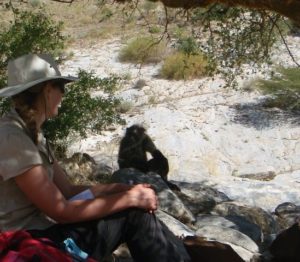 on a project with London Zoo called the Tsaobis Baboon Project. Here we have two troops of baboons that we follow every day. We wake up before sunrise to find the troop waking up, and then we follow them all day long, like this. We do a lot of walking – until they rest and we get to rest with them.