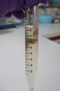 In the laboratory I look down the microscope. I look at the poo (after sieving it and adding chemicals) to try and see how many diseases the baboons have.