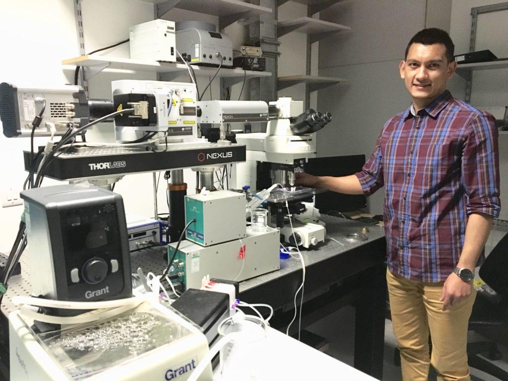 I then take the vessels and look at them with a very big powerful microscope which costs about a quarter of a million pounds. I shine a strong laser on the vessels and then record a video of the cells with a camera attached to the microscope. We blow up the vessels, kind of like how you blow up a balloon. Sometimes I change how much I blow up the vessels or what drugs I add to the vessels to see what happens to the cells in the blood vessel.