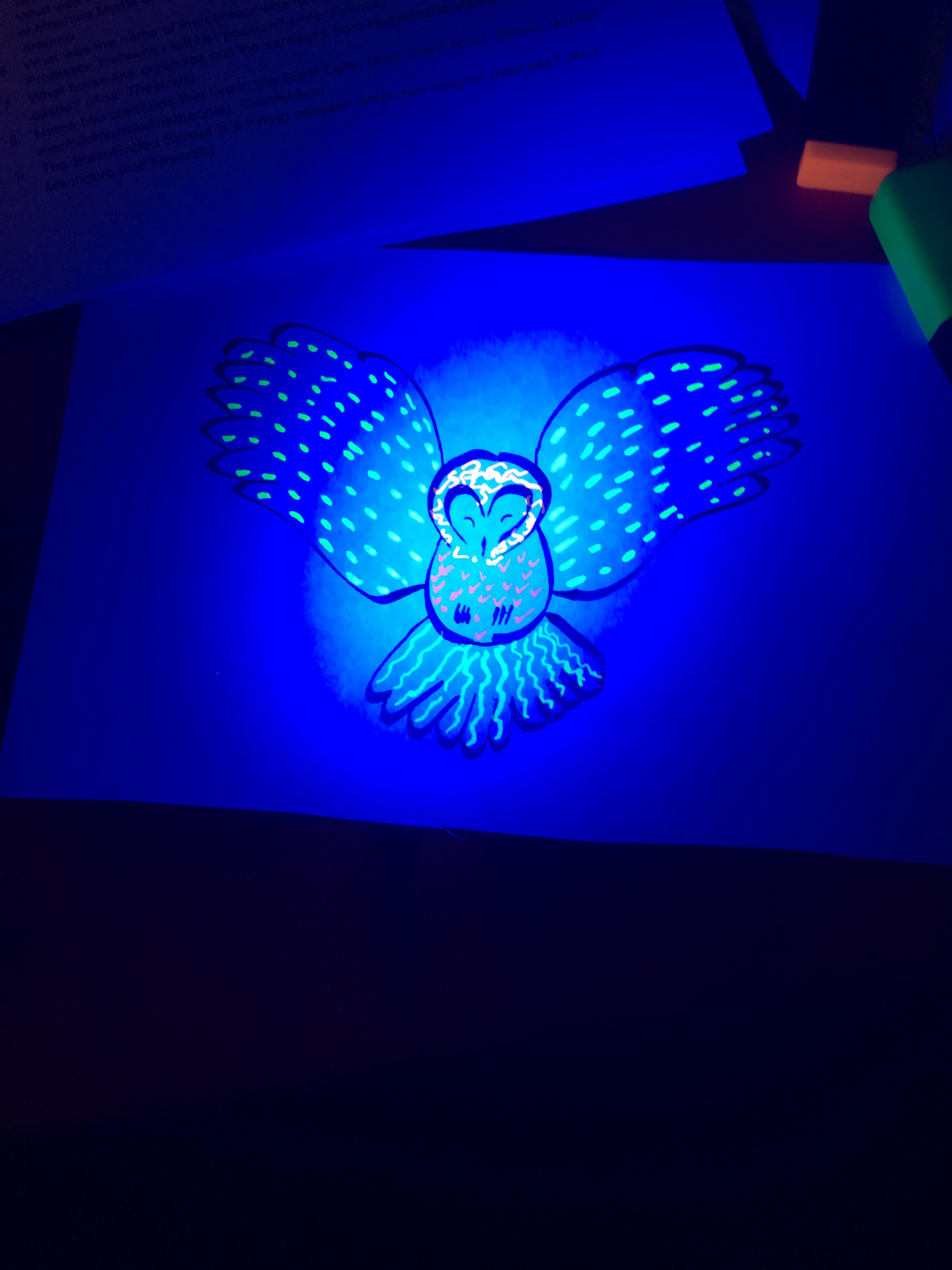 (I didn’t draw the owl, just added the highlighter and the UV torch!)