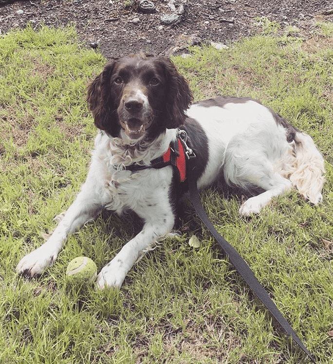 Hi, my name is Amy and my pronouns are she/her. I’m originally from Barnsley, South Yorkshire, but now I live in Wrexham, North Wales, with my dog Bella. She’s a 7 year old Springer Spaniel and is a trained search dog. I am a forensic science lecturer and specialise in forensic anthropology and archaeology which is the search, recovery and identification of human remains, specifically bones.