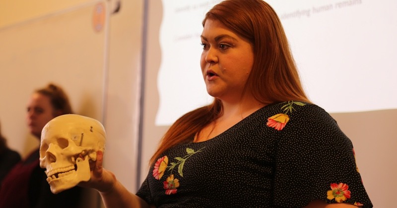 I am a Senior Lecturer in Forensic Science at Wrexham Glyndwr University where I teach students how to collect evidence from crime scenes, how to test that evidence in the laboratory and how to present that evidence to a courtroom so that they can go on to help solve crimes in the future. My background is in biology and I specialise in archaeology and anthropology which means I work a lot with dead bodies. It might seem a bit gruesome and scary but it is really important work.