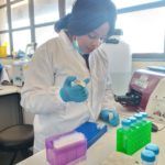Work normally starts with a catch up meeting with my line manager. We talk about things we did the day before and things we would like to achieve on that particular day. I then head off into the lab, where my colleagues usually have the radio on in the background, and I put on my protective work gear (very important for a scientist to stay safe!). I usually work with bacteria and mammalian cells a lot! Sometimes its tiny tubes of DNA, other times its large flasks of different kinds of cells.