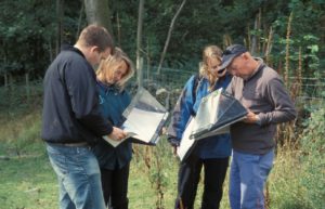 This photo shows some of the Countryside Survey team comparing notes about the hedgerows and vegetation of this area of Cumbria.