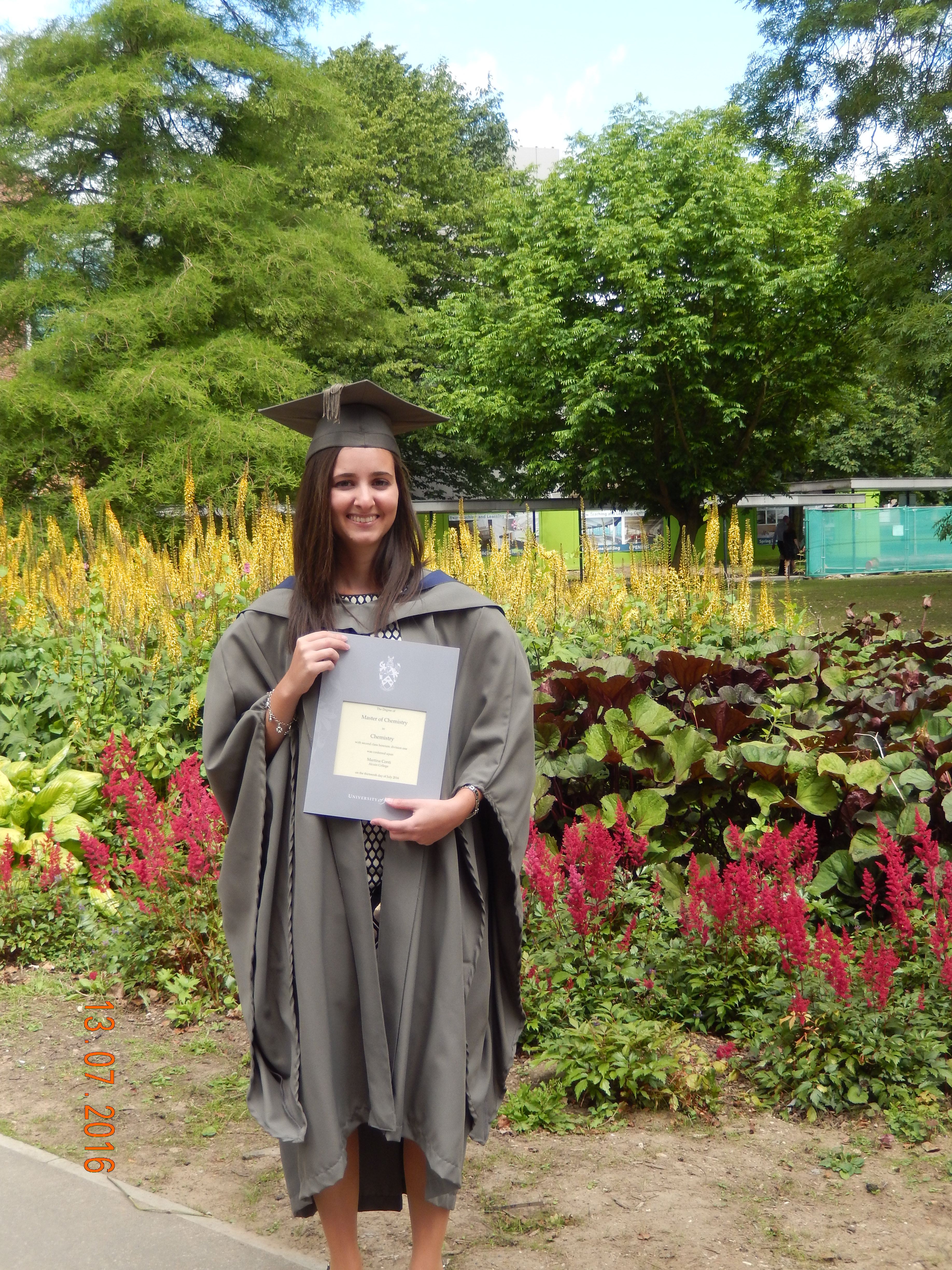 2012-2016 MChem in Chemistry, University of York. During the summer I did internships in research labs.