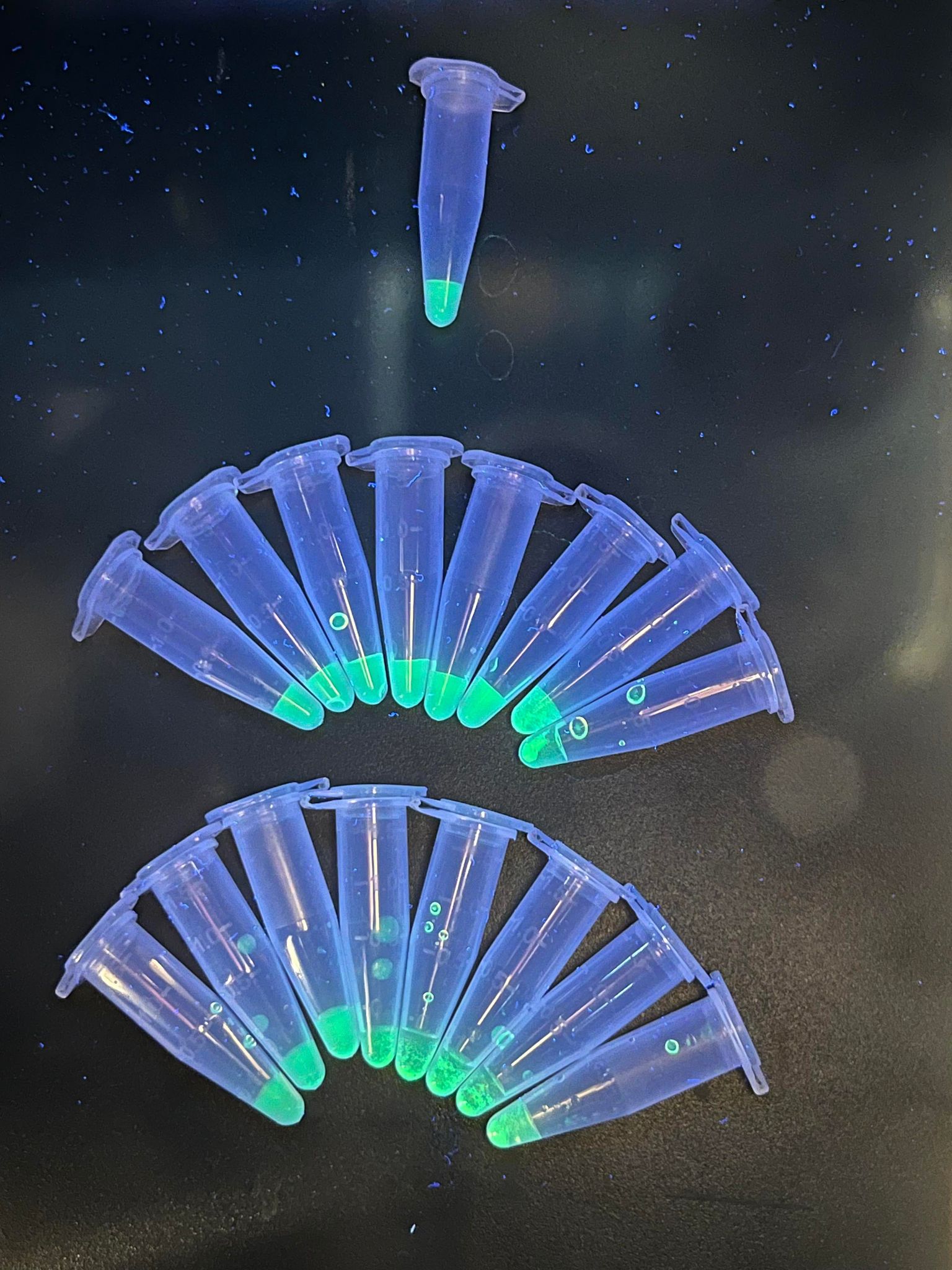 My research focuses on the creation of particles that can light up when a laser is shined at it.