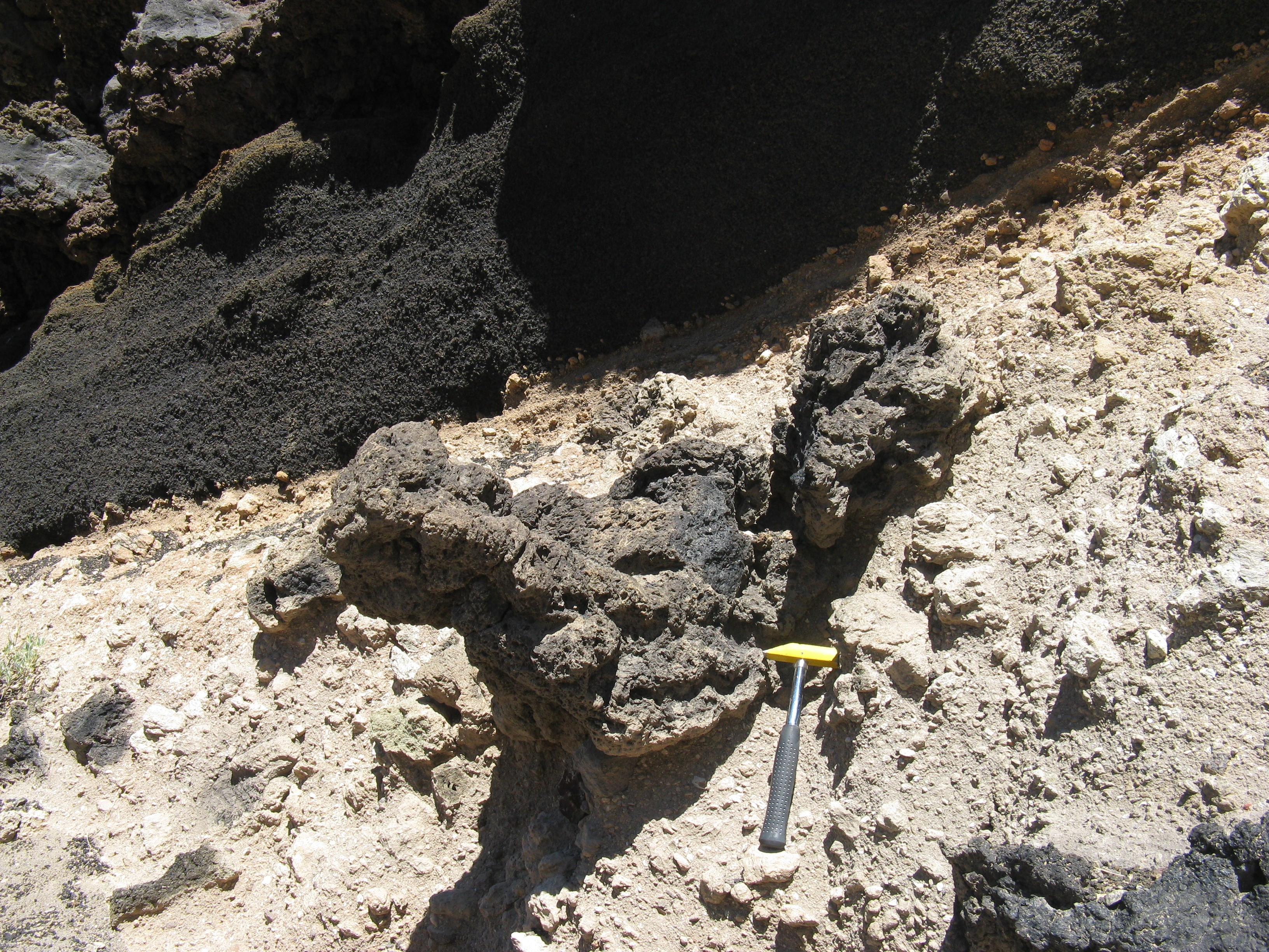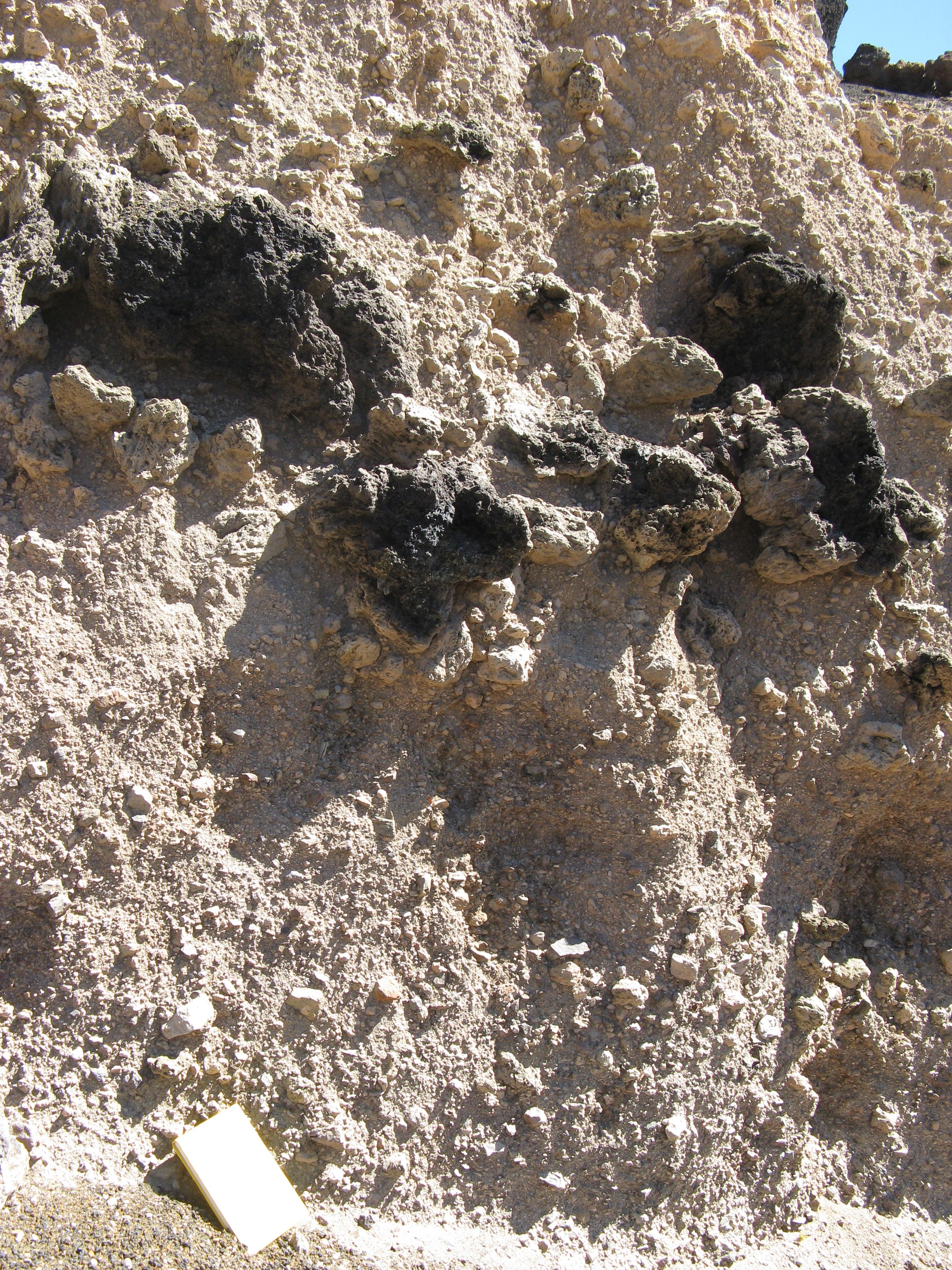 These large boulders were black in colour, telling me they were of a different chemistry to the surrounding creamy-white rocks, and some had green streaks within them. When I took them back to the lab to analyse them, I found that the black and green colours were two different types of magma, that had been “mingled” together in the chamber. Both of these types of magma were different to the more silica-rich magma that made up most of the eruption.