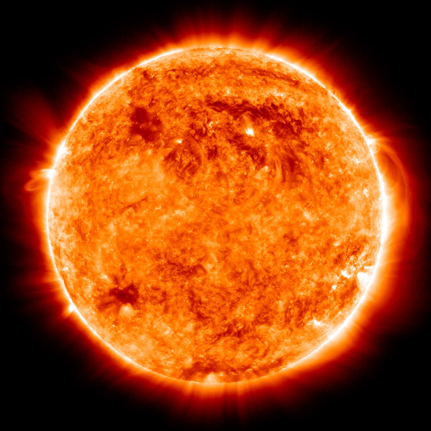 All of these stars create bigger and bigger atoms, eventually peppering the universe with heavy atoms as these stars explode and die. Eventually a star is born in this new “peppered universe” and (as before) all the light hydrogen rushes inwards forming the familiar nuclear explosion but this is special… This is THE SUN!