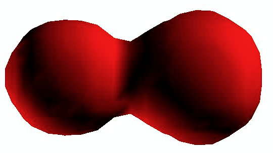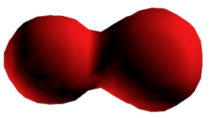The picture below shows a still from a movie of two nuclei colliding. The nuclei are isotopes of oxygen and carbon. Click here (not on the picture) for the full movie.