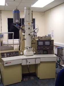 My project is all about trying to understand mechanical properties of a common ceramic, called aluminium oxide. As ceramics are commonly brittle (you know that from practice – drop a ceramic mug on the floor, and you’ll know what I mean!), there is a lot of work being done to try and understand this, and then make them tougher. When a ceramic is put under stress, it can either start cracking, or undergo some “plastic deformation” (such as things called twins or dislocations). So, I am trying to use a microphone to listen to the sound of the ceramic breaking, and trying to work out when it starts to break/deforms. I then look at the sample in what is called a Transmission Electron Microscope (or a TEM) (see image) to try and find what sort of breaking/deformation