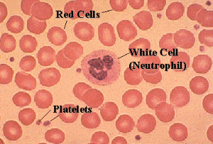 I can also look down a microscope and see if the cells in your blood all look normal like the picture above.