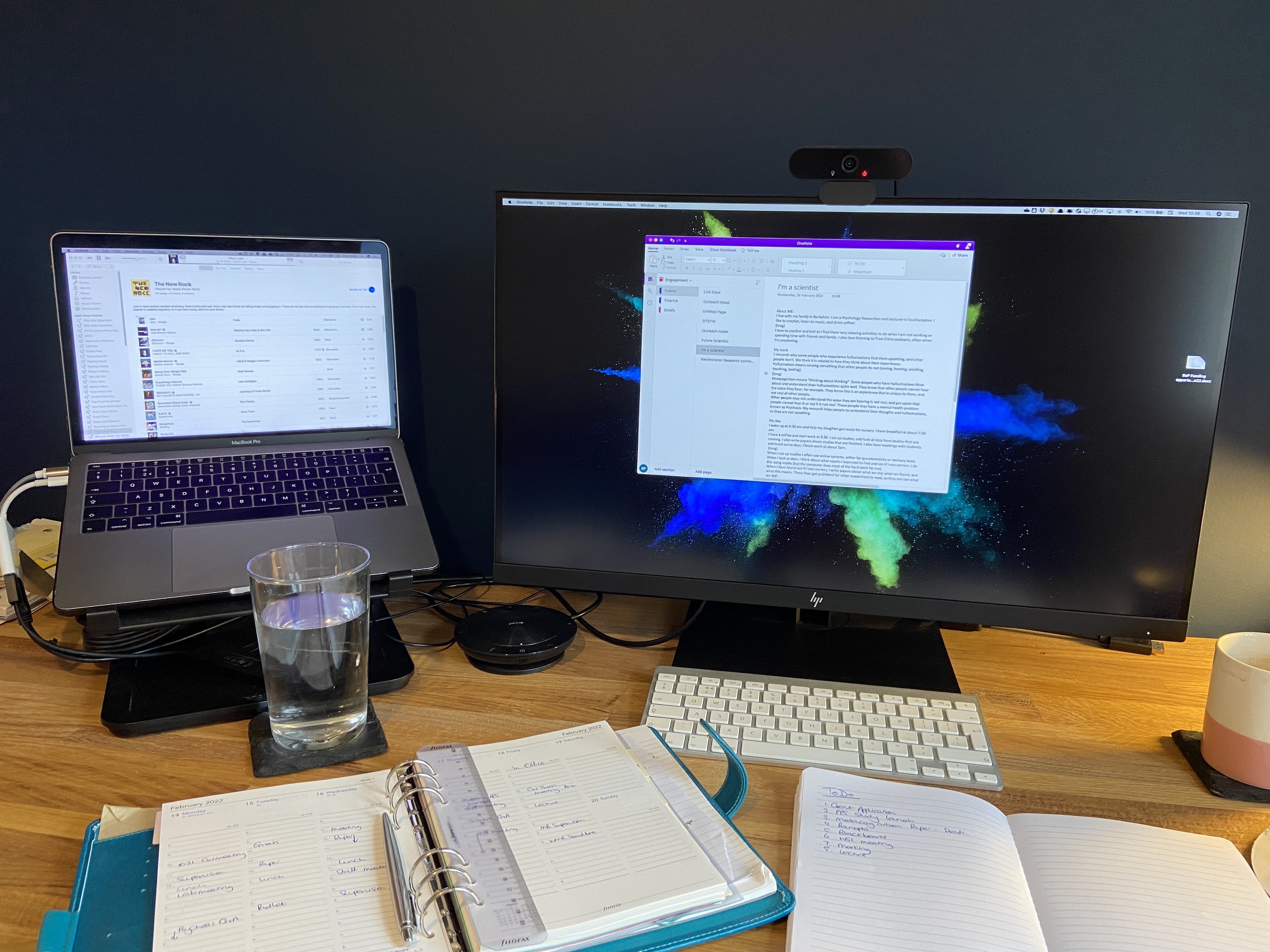 I have a coffee and start work at 8:30. I set up studies, and look at data from studies that are running. I also write papers about studies that are finished. I also have meetings with students and teach some days. I finish work at about 5pm.