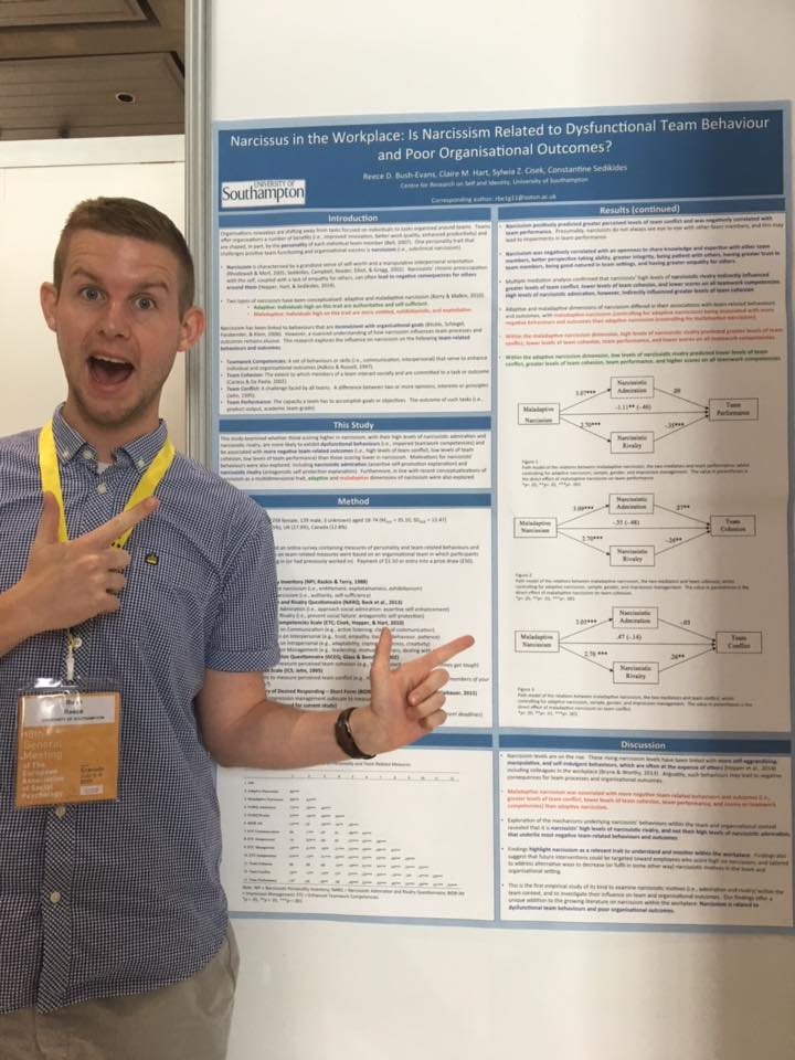 Before working at Bournemouth University, I completed my PhD at the University of Southampton in the Psychology department. My research explored personality (in particular, narcissism – think Donald Trump) and how individuals high on narcissism interact with members of their team (either at work or in daily life) to get jobs done. I was very lucky to produce some exciting research here, including the use of an escape room to test my research questions.