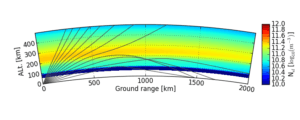 To do this, I write my own computer programs that use data from a huge network of radars, which cover the North and South poles. The radars work by bouncing radio waves off the bottom of the ionosphere. We can use the radio waves that return to the radar to figure out a lot of things about the plasma they traveled through, including how fast it’s moving and how much of it there is! Here is a picture showing how some of the radio waves will travel, depending on how thick the ionosphere is.